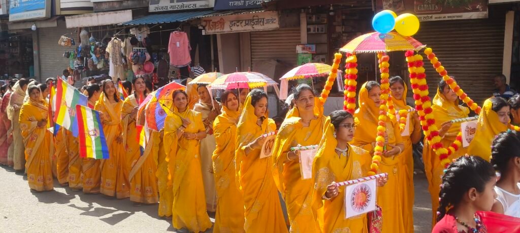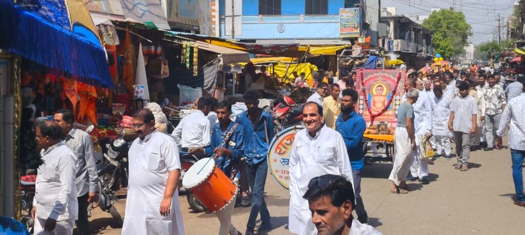 महावीर स्वामी के जयकारों” से गूंजते नगर के बीच निकली शोभायात्रा ने पूरे वातावरण को धर्ममय बना दिया। सजे-धजे रथ, आकर्षक झांकियां और सफेद वस्त्रों में श्रद्धालुओं की अनुशासित सहभागिता ने आयोजन की भव्यता को और बढ़ा दिया। नगर के प्रमुख मार्गों से गुजरते हुए जगह-जगह पुष्पवर्षा कर श्रद्धालुओं ने स्वागत किया, जिससे पूरा शहर श्रद्धा के उत्सव में डूब गया।